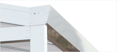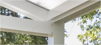 Das DUROLUX® ist so gestaltet, dass es möglichst schlichte Geometrien aufweist. Mittels Klickprofilen werden sonst offene Profile sauber und schraubenfrei geschlossen. Der Aufbau der Dachkonstruktion ist sehr flach und lässt die Konstruktion sehr leicht wirken. Die Entwässerung ist integriert mit dem Fallrohr im Pfosten.
