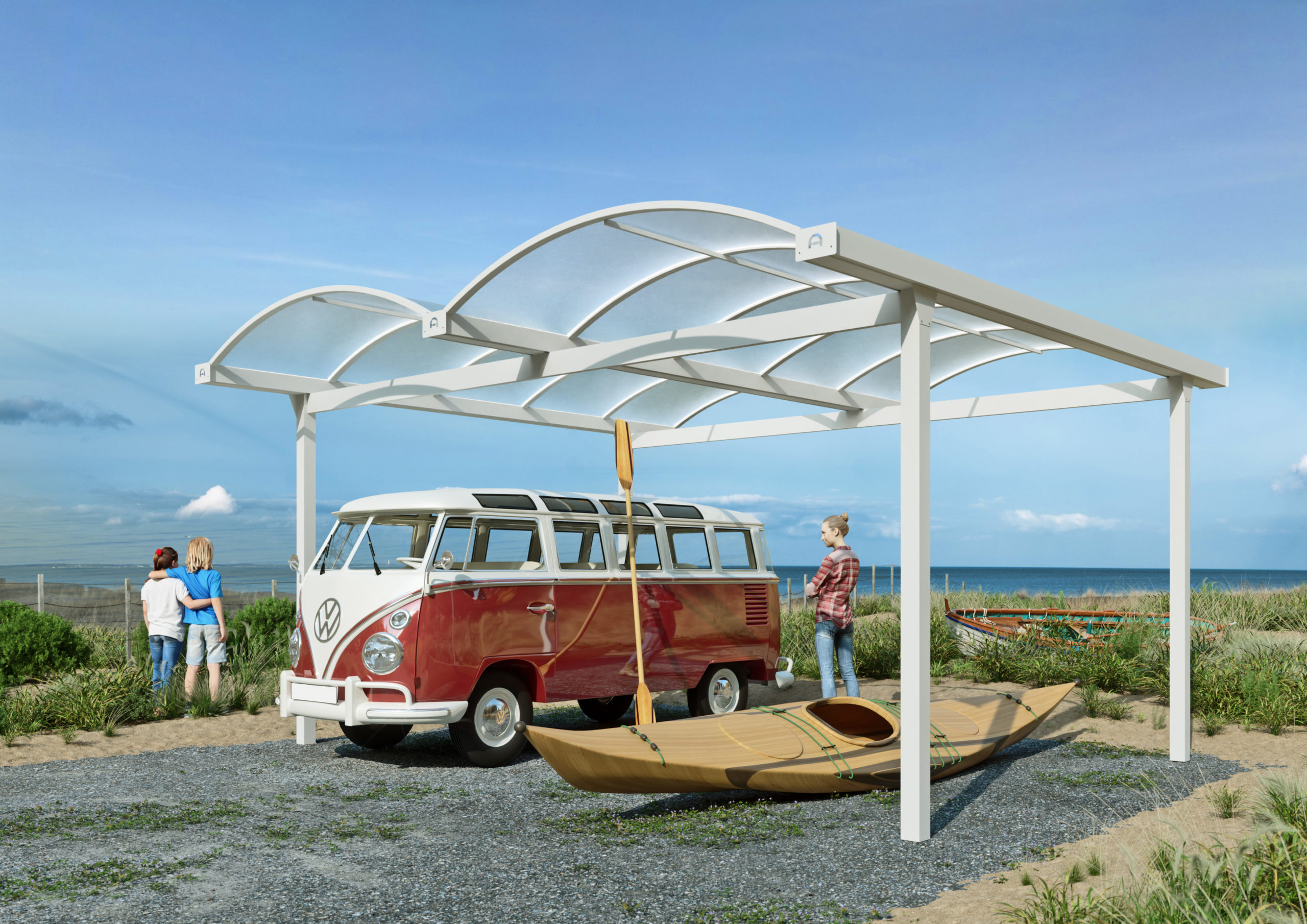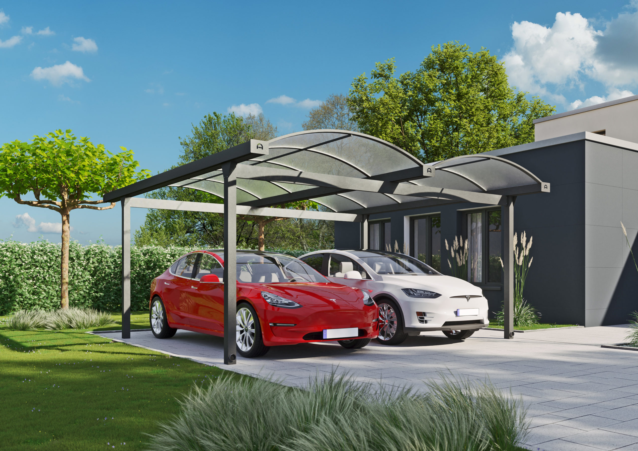Typ N – Alucarports mit Bogendach