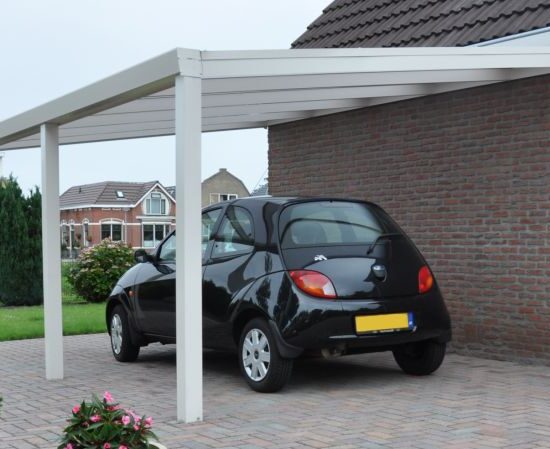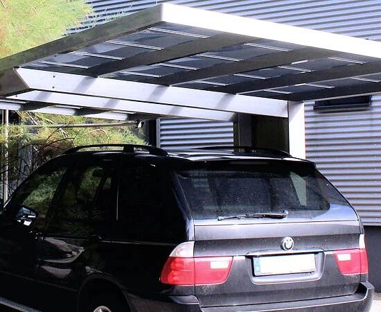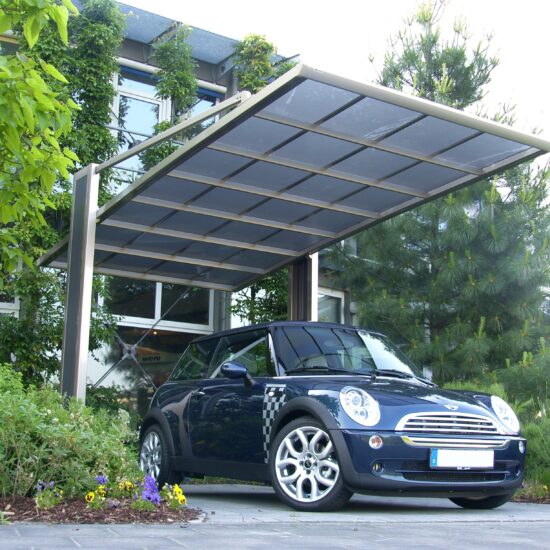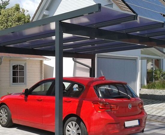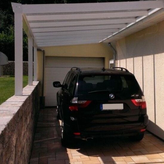 Der klassische Anbaucarport mit Dach aus Polycarbonat.