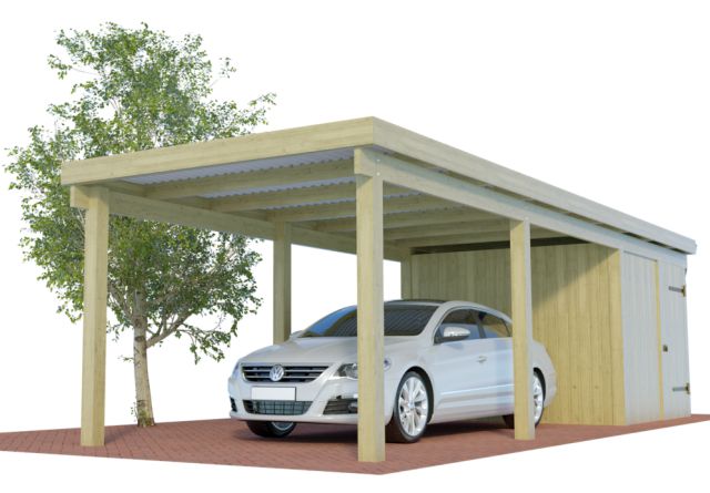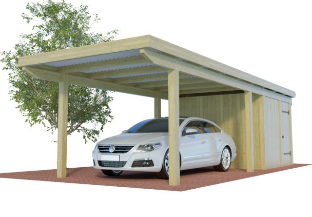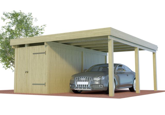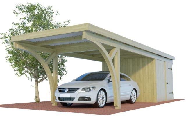 Alle verfügbaren Einzelcarports mit Abstellraum aus Holz